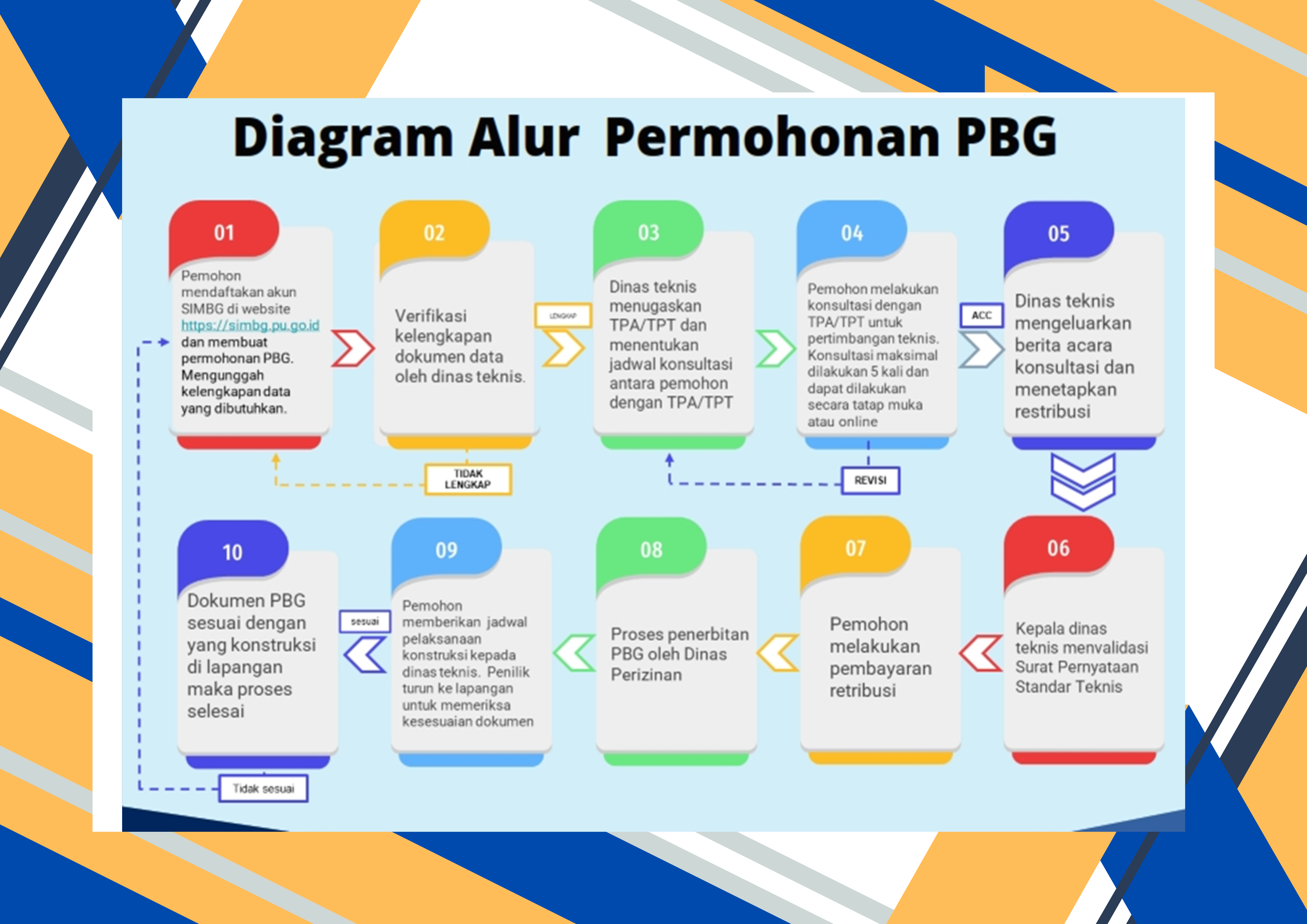 Dalam dokumen diagram alur ini, dijelaskan tahapan-tahapan proses pelayanan penerbitan PBG, mulai dari pengajuan permohonan hingga penerbitan dokumen resmi. Secara umum, alur tersebut dapat dijabarkan sebagai berikut: