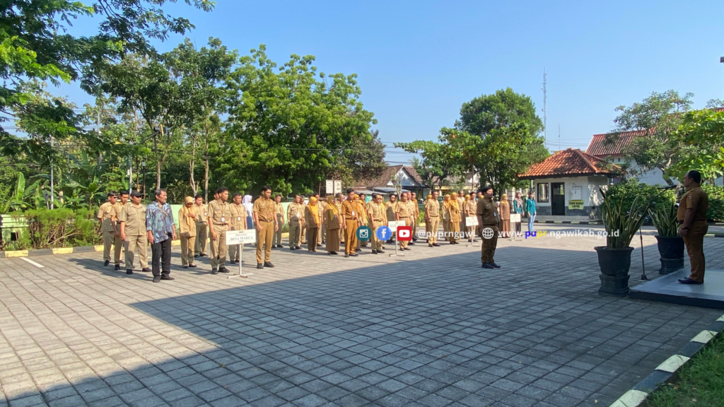 DPUPR NGAWI – Dinas Pekerjaan Umum dan Penataan Ruang (PUPR) Kabupaten Ngawi melaksanakan apel rutin setiap Senin pagi di halaman Kantor Dinas PUPR Ngawi. Kegiatan apel ini diikuti oleh seluruh pejabat dan staf sebagai bentuk kedisiplinan serta komitmen Aparatur Sipil Negara (ASN) dalam menjalankan tugas dan tanggung jawabnya.